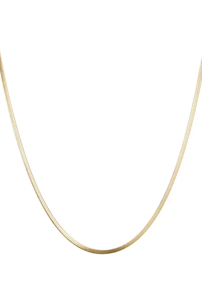 Featuring a dainty 3mm herringbone snake chain which is 18k gold vermeil with a sterling silver base.