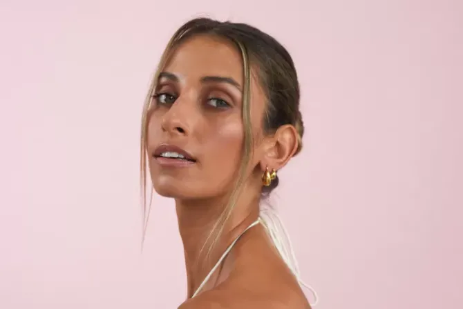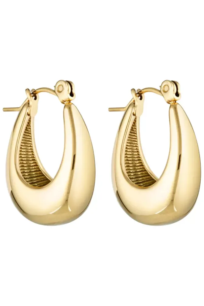 18k gold vermeil with a sterling silver base. All our pieces are water-resistant, will never rust or turn green, and can be worn in the shower.