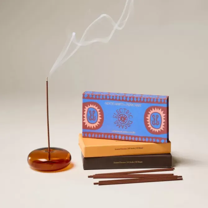 The limited edition This Is Incense scent created for the Electric Dreams project is housed in a box with signature hand drawn artwork, bright yellow tray and handwritten love note by Sophie Bell.