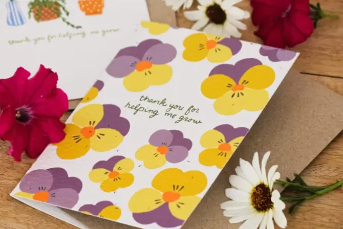 Say thank you to a special teacher with our Thank You For Helping Me Grow Plantable Card. This unique gift features a beautiful pansy design and can be planted in soil to grow real flowers. Show your appreciation in a thoughtful and eco-friendly way with this end of year gift.